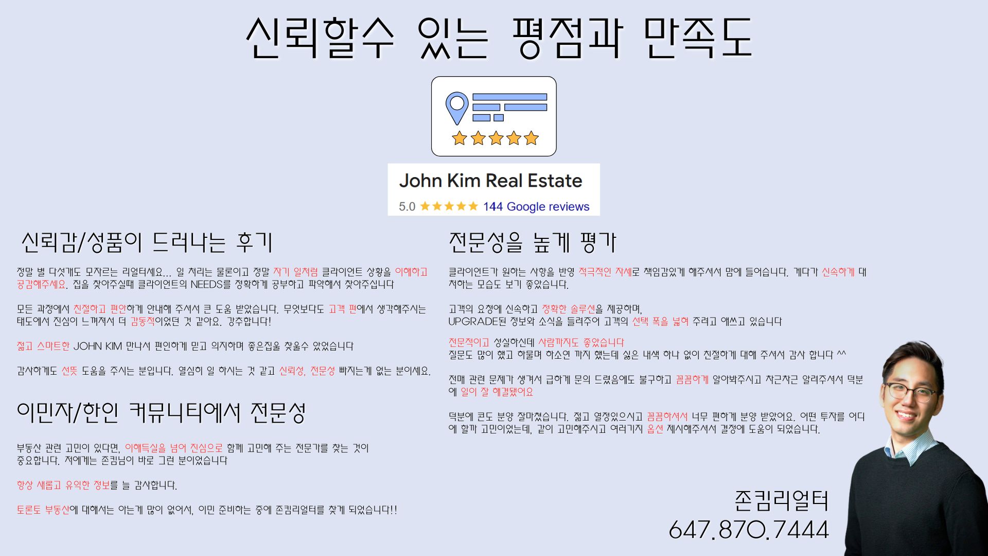 토론토 및 GTA 전역에서 활동하는 리얼터 존킴입니다.