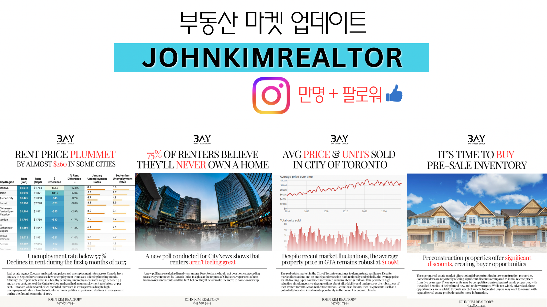 주택 매매, 투자용 부동산, 신규 분양(Pre-construction condos & homes)을 전문적으로 도와드리고 있습니다.
