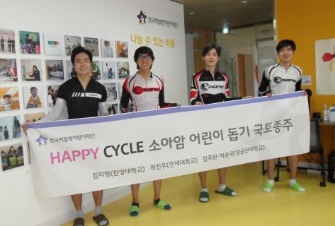 HAPPY CYCLE(운영자 김지창)이 29일 소아암 어린이 돕기 국토종주를 통해 마련된 후원금을 한국백혈병어...