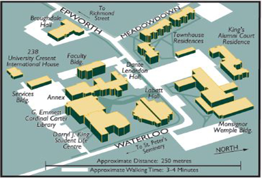 웨스턴 대학 (Western University)의 킹스 대학교 (King 's University College)는 3,500 명의 학생들로 구성된 친밀한 공동체로서 "두 세계의 최고"를 제공합니다.