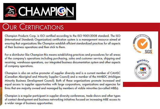 CHAMPION PRODUCTS - MissyCanada   업체정보 기타업체     CHAMPION PRODUCTS 상세정보